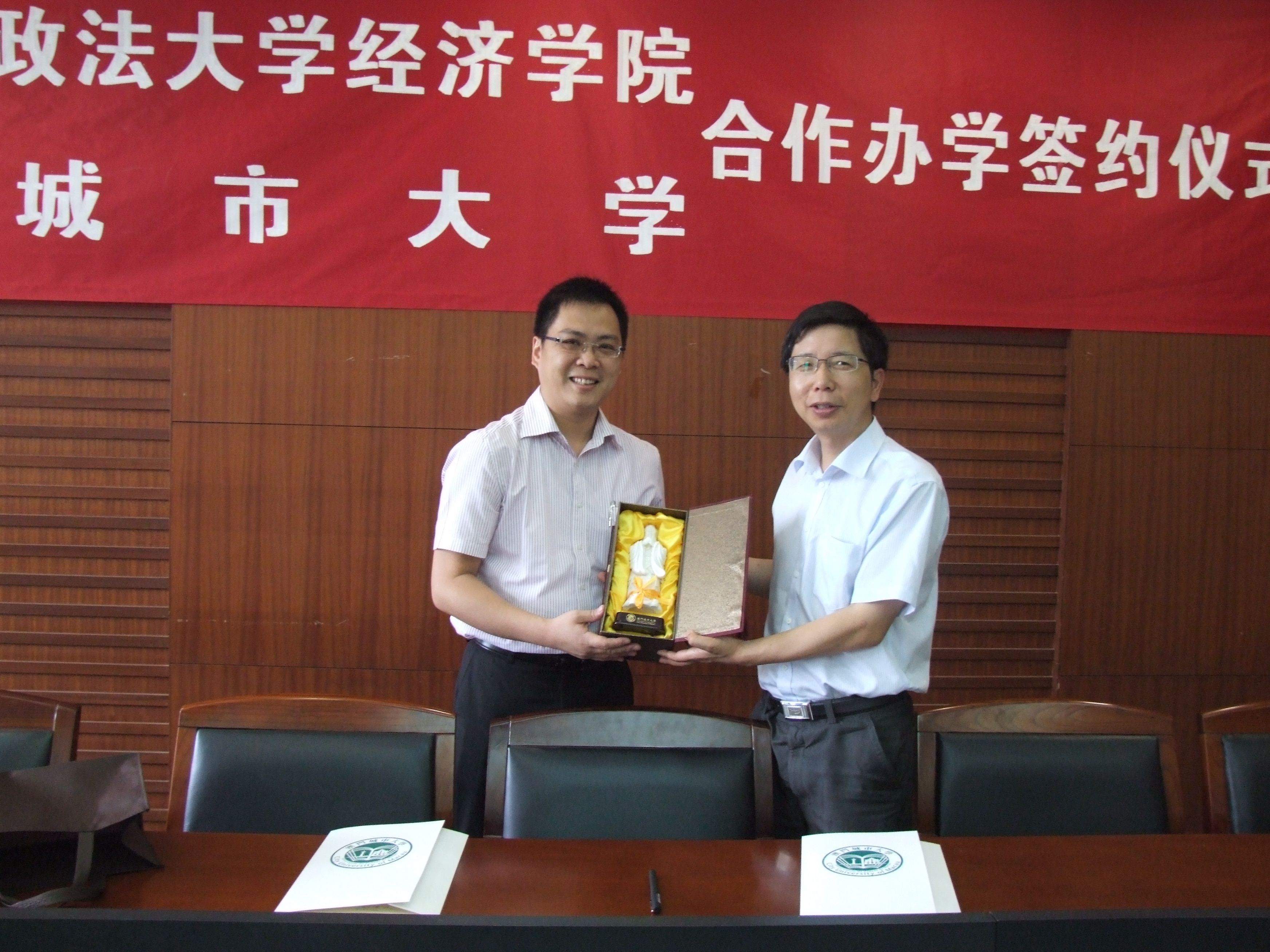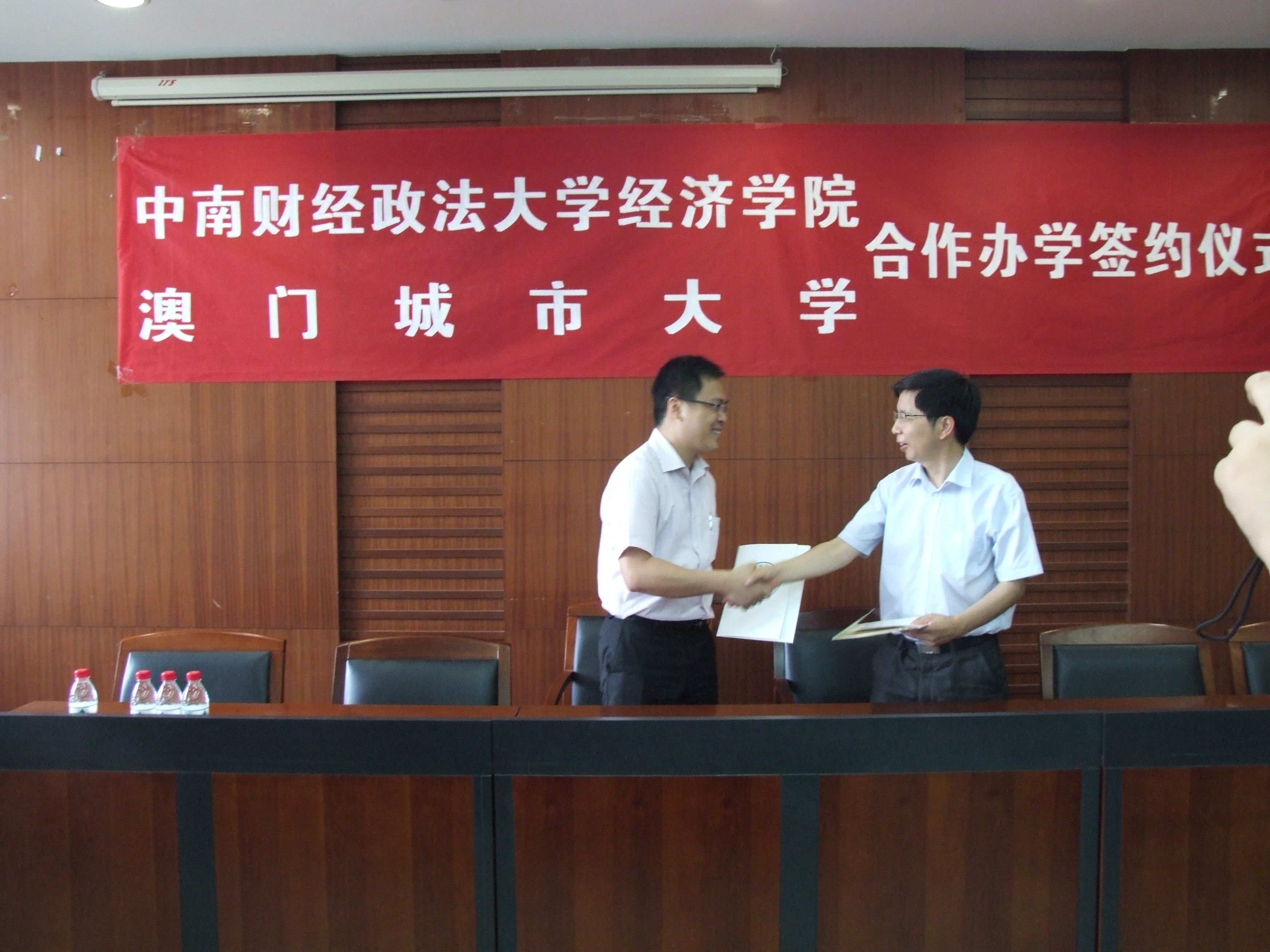 签约仪式在愉快的气氛中进行,澳门城市大学国际公开学院总监陈俊拔先生介绍了澳门城市大学的一些相关情况及合作办学项目的优势、特点。我院邹进文院长与澳门城市大学国际公开学院总监陈俊拔先生就双方合作办学正式签约(招生简章见:),并互换礼物合影留念。