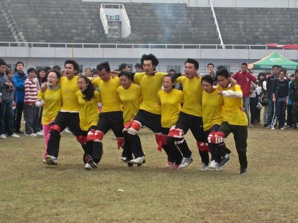 (新闻中心 吴昌盛黄泰榕)金风送爽,七月流火。2012年10月26日,我校的秋季田径运动会进入了第二个比赛日。上午10:30分,全场的目光汇集到了新体的草坪上,因为这里即将举行万众瞩目的齐心协力跑比赛,经过激烈角逐。我院以6.35秒的好成绩获得季军,法学院和金融学院分获冠亚军。 比赛还未开始,激动的同学们早已将赛场围得水泄不通,由此可见这场比赛的吸引力和重要性。赛前裁判先让选手们试跑了一遍。接下来,各个学院的选手纷纷上场,他们自信的面庞上写满了对比赛的热烈期待。 比赛正式开始,经济学院的十名选手一齐做好了起跑的准备。他们腿部微弯,坚定的眼神目视前方,脸上浮现出志在必得的笑容,这一切预示着我院今天将会在该项目有着非凡的表现。场下观众屏住呼吸,共同期待着这支胜利之师的表演。随着裁判一声令下,我院健儿稳步起跑,一声声“一二,一二”使他们步履十分协调;之后他们稳中求快,口号喊得越来越快。在距终点前只有十米时,他们加速了!这排队伍继续发力,离终点越来越进。一声闷响,队员们卧倒在了气垫上,6.35秒,队员们开始尽情欢呼! 稍后出场的法学院也整装待发了,在看台上“文治武功冠中南,王者之师法学院”的口号声下,他们出发了,一路上速度极快,最终以5.86秒获得冠军。金融学院发挥出色,以5.94秒紧随其后,名列第二。后来,身着清一色的红色队服的外国语学院代表队在全过程稳定发挥,步调一致,但是很遗憾没有站上领奖台。 比赛完后,各个代表队纷纷合影留念。只见他们紧密地站在一起,脸上露出了幸福的笑容,大声喊着自己的口号。“经久磨砺,济世良才”在操场上不时回荡,感染到了每个人。 齐心协力跑是一种非常考验团结的项目,希望经济学院的健儿们齐心协力,在后续比赛中继续发扬“团结一心,众志成城”的精神,共创辉煌!