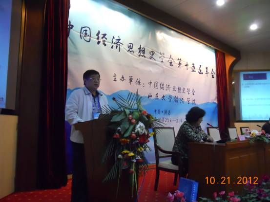 2012年10月20-21日,由中国经济思想史学会主办,山东大学经济学院承办的中国经济思想史学会第十五届年会在山东大学举行。来自中国社会科学院、北京大学、清华大学、北京师范大学、复旦大学、武汉大学、山东大学、上海财经大学等高校、科研院所的100余名专家学者出席了本次年会。我校经济学院邹进文教授、瞿商教授、朱华雄副教授、宋丽智副教授向大会提交论文并应邀参加了本次年会。与会代表围绕“中国经济思想的变迁与齐鲁文化的本土化、国际化研究”这一主题进行深入研讨,取得了丰硕的成果。中国经济思想史学会会长、武汉大学商学院严清华教授做了工作报告,并对半岛线上平台经济思想史专业在2012年度获得一项中国社科基金项目(邹进文教授)、两项教育部人文社科基金项目(朱华雄教授、宋丽智副教授)进行了高度的赞扬和祝贺。