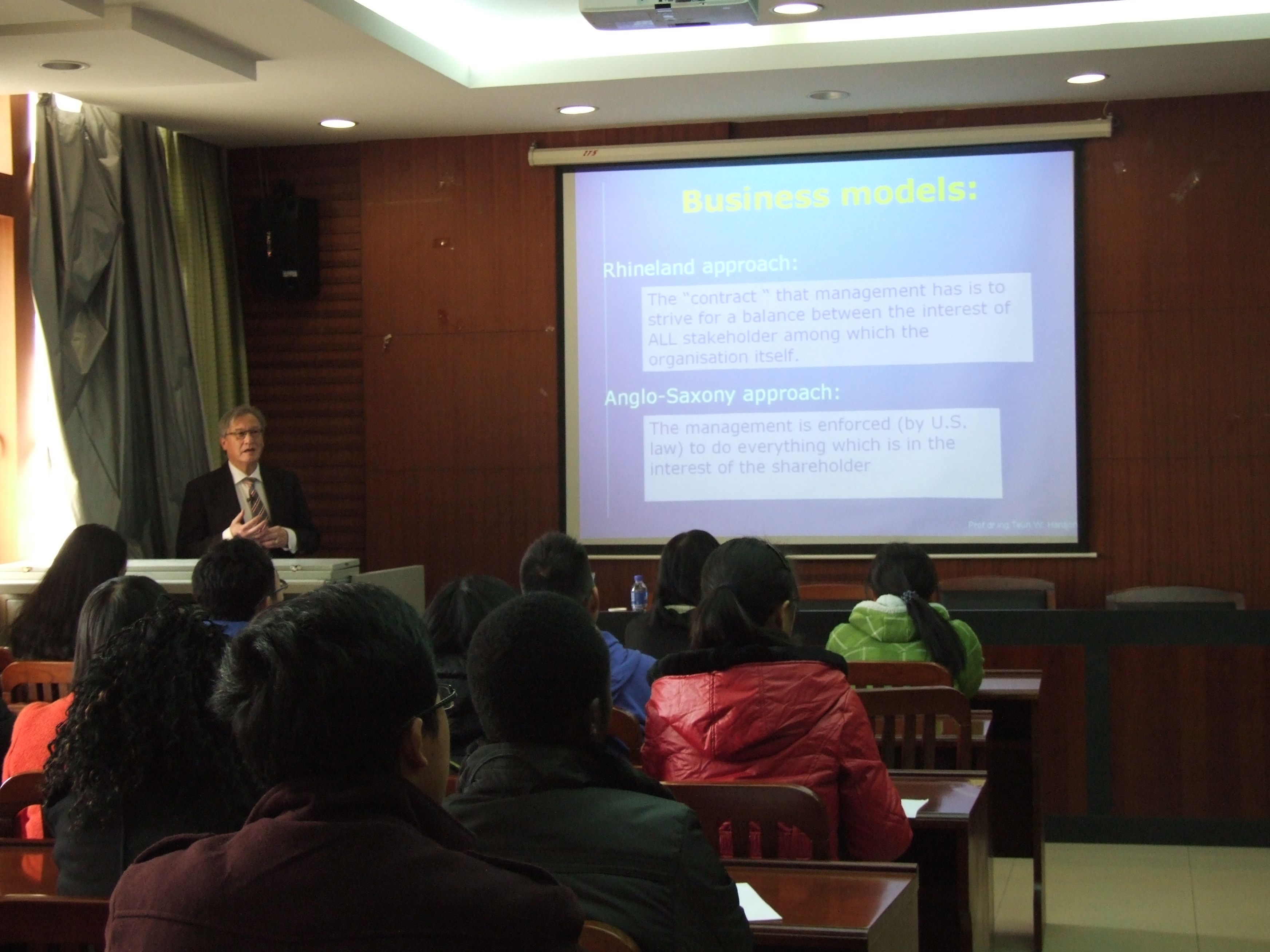 2012年12月6日下午,荷兰鹿特丹伊拉斯姆斯大学Teun Willem Hardjono教授来到经济学院为同学们讲座,主题为欧洲对产品和服务质量管控的新方法。经济学院副院长罗良文教授主持讲座,经济学院教师、本科学生和部分我校留学生倾听了讲座。 Teun Willem Hardjono教授是荷兰鹿特丹伊拉斯姆斯大学(ERASMUS UNIVERSITY)教授,同时又是鹿特丹企业社会责任学院的联合创始人之一,荷兰GOUDA市市政委员。他的研究方向集中在欧洲企业社会责任划分。他将质量管理战略分为5个阶段,即产品质量阶段、加工工序质量阶段、系统质量阶段、商业链条质量阶段和社会质量阶段。这5个阶段的复杂程度是递增的,而可操作的工具选择也同样是递增的。 这一划分思路非常新颖,引起了同学们的极大兴趣。联系中国现实,同学们重新审视了中国产品质量管理问题,中国乳制品等食品安全问题又一次成为讨论的热点。同学们也试着运用所学的经济学知识与Teun Willem Hardjono教授的管理学理念进行融合辩争,他们提出问题,试图从交叉学科的角度解决提升企业社会责任与企业追求利润最大化之间的矛盾。部分我校留学生也对这一选题表示了浓厚的兴趣,他们从更为广阔的国际视角探讨他们本国的相关质量管理战略,通过比较分析,引发了进一步的积极思考。