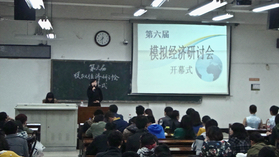 紧接着由上一届模拟经济研讨会一等奖获得者马超与张云珂介绍经验。马超从确定研究方向、广泛阅读寻找资料、分工协作找准定位、论文完稿、注意问题、成果展示六个方面详尽的介绍了自己的经验。他认为选题应该小而尖,论文应该“总-分-总”,注意成果的学术性、专业性与多样性,并介绍了中国知网、万方数据平台等资料库。张云珂则从选题、课题研究是否需要数学模型、课题研究是否需要调研、不选择新观点是否不会成功等方面介绍了自己的经验。她认为选题要有创新意识,注意观点的框架、条理,注意数据采集的严谨性。另外,她鼓励大一学生积极参与模拟经济研讨会,认为大一知识已经能够满足需要。马超与张云珂详细具体的经验介绍赢得了阵阵掌声。 本届经济模拟研讨会开幕式到此结束,在模拟经济研讨会中,学生们将躬行纸上知识,在实践中创新与发展,关注现实,发现与提出问题。预祝所有参加模拟经济研讨会的同学们取得好成绩!