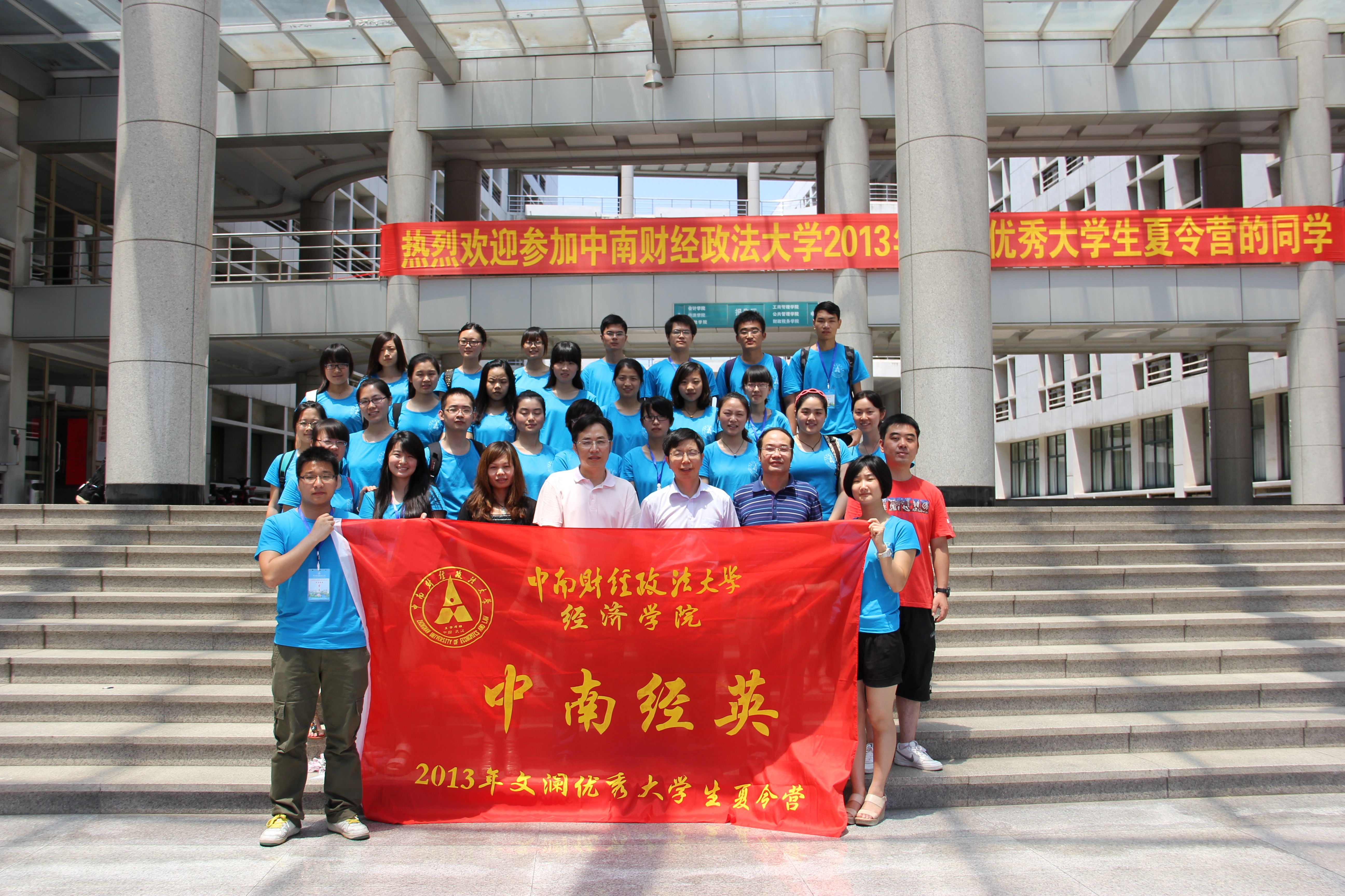 中南财经政法大学2013年文澜优秀大学生夏令营-“中南经英(经济学院)活动是经济学院组织的第一届全国优秀大学生夏令营,旨在促进中国高校经济学优秀大学生之间的交流,加强青年学生与经济学者的联系,并从中选拔优秀学生继续深造。本次夏令营中的优秀学员将有机会获得2013年我院硕士研究生免试推荐资格。中南经英(经济学院)夏令营是我院接收外校和本校其他院系推荐免试研究生(计划内非定向)的途径之一。