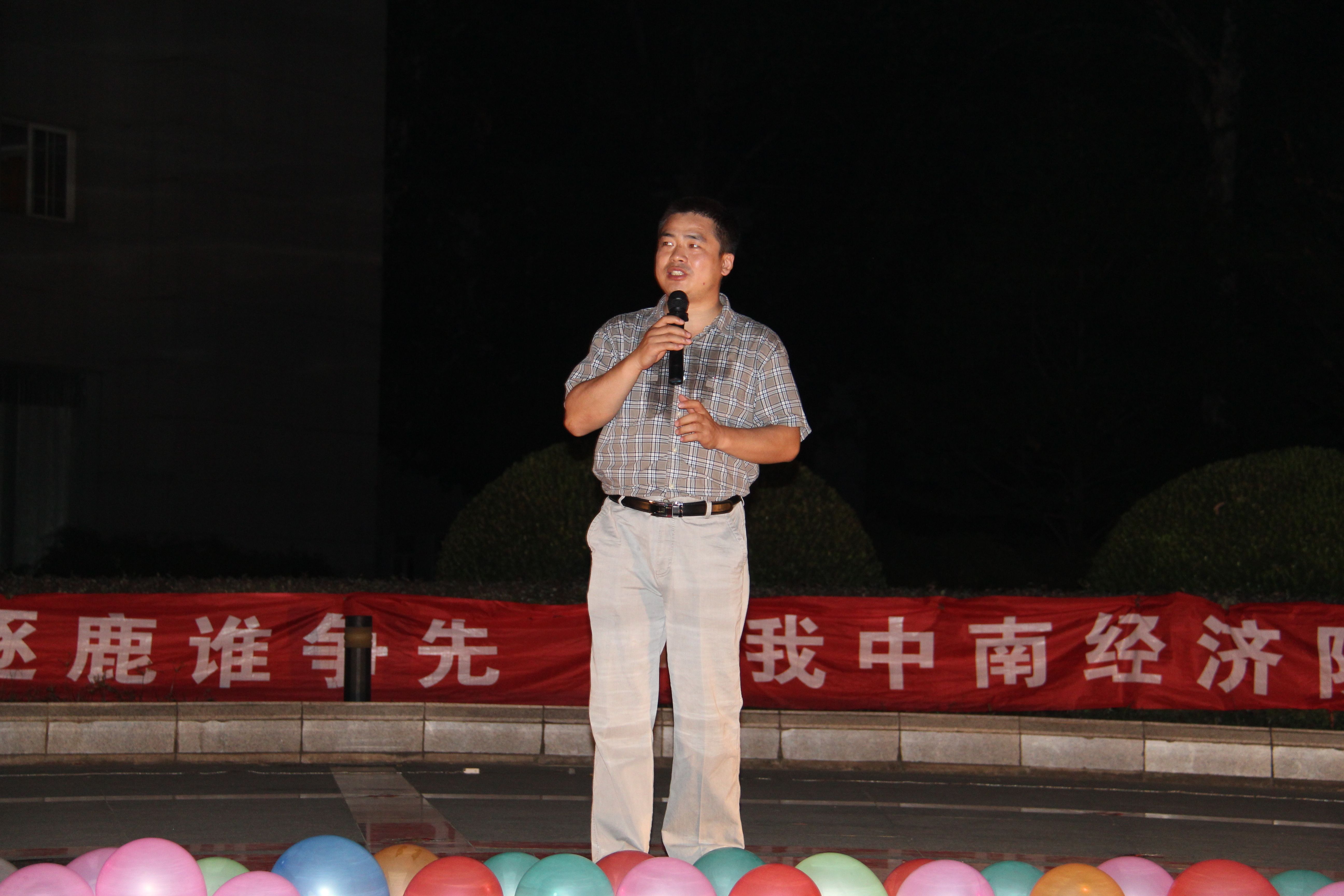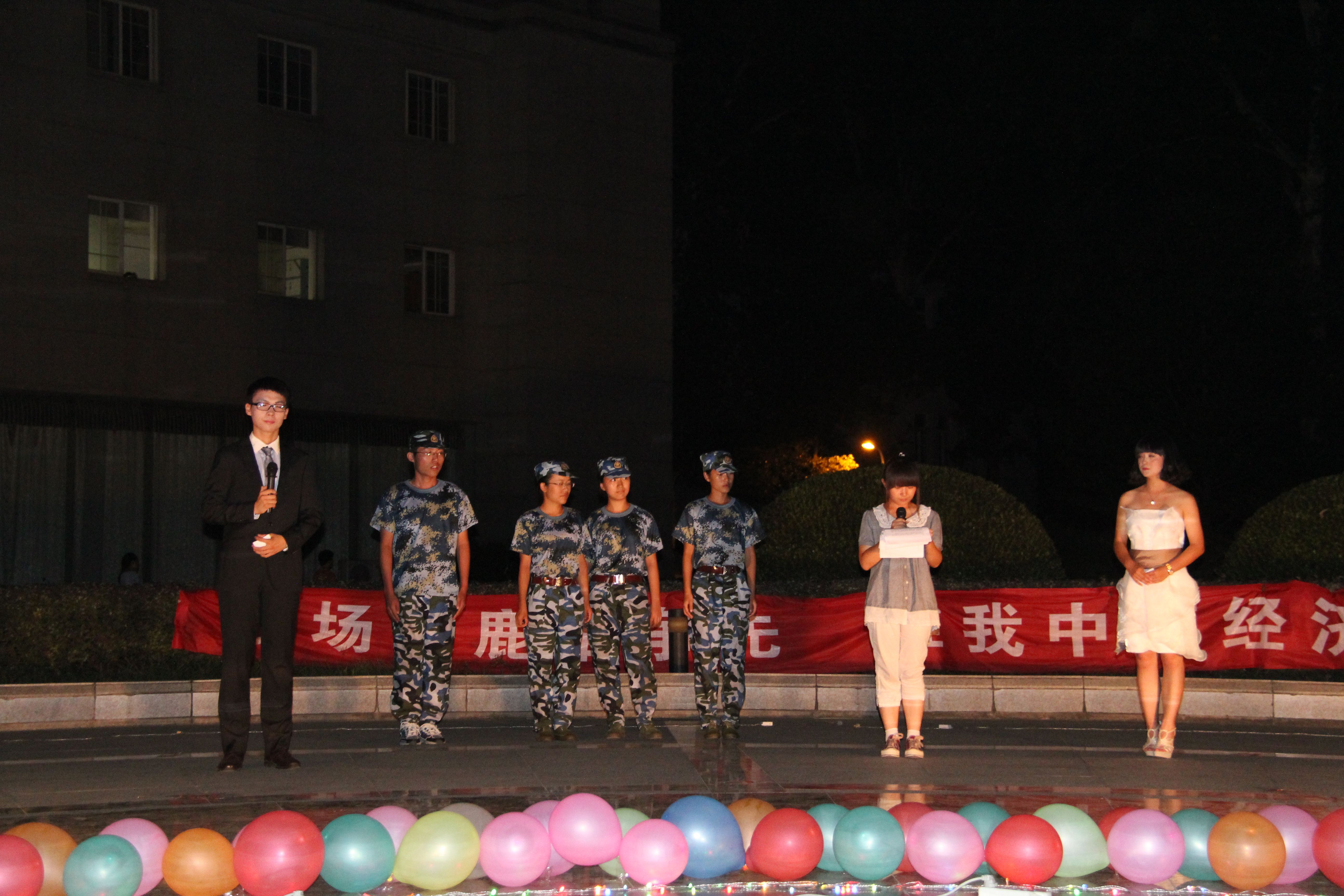 ——经济学院2013年迎新生中秋晚会完美落幕 (新闻与网络技术部 刘祎芳张硕)9月19日晚七点,在中秋佳节之际,经济学院2013年迎新生中秋晚会在首义校区的中南楼与文津楼之间的圆形广场绚丽拉开帷幕。经济学院党委副书记詹万明老师,2013级新生辅导员蒋芳老师和辅导员助理们亲临晚会现场,与同学们共聚美好时光。经院师生们在欢声笑语中度过了历时一个半小时的晚会,也度过了金秋最美的时光。
