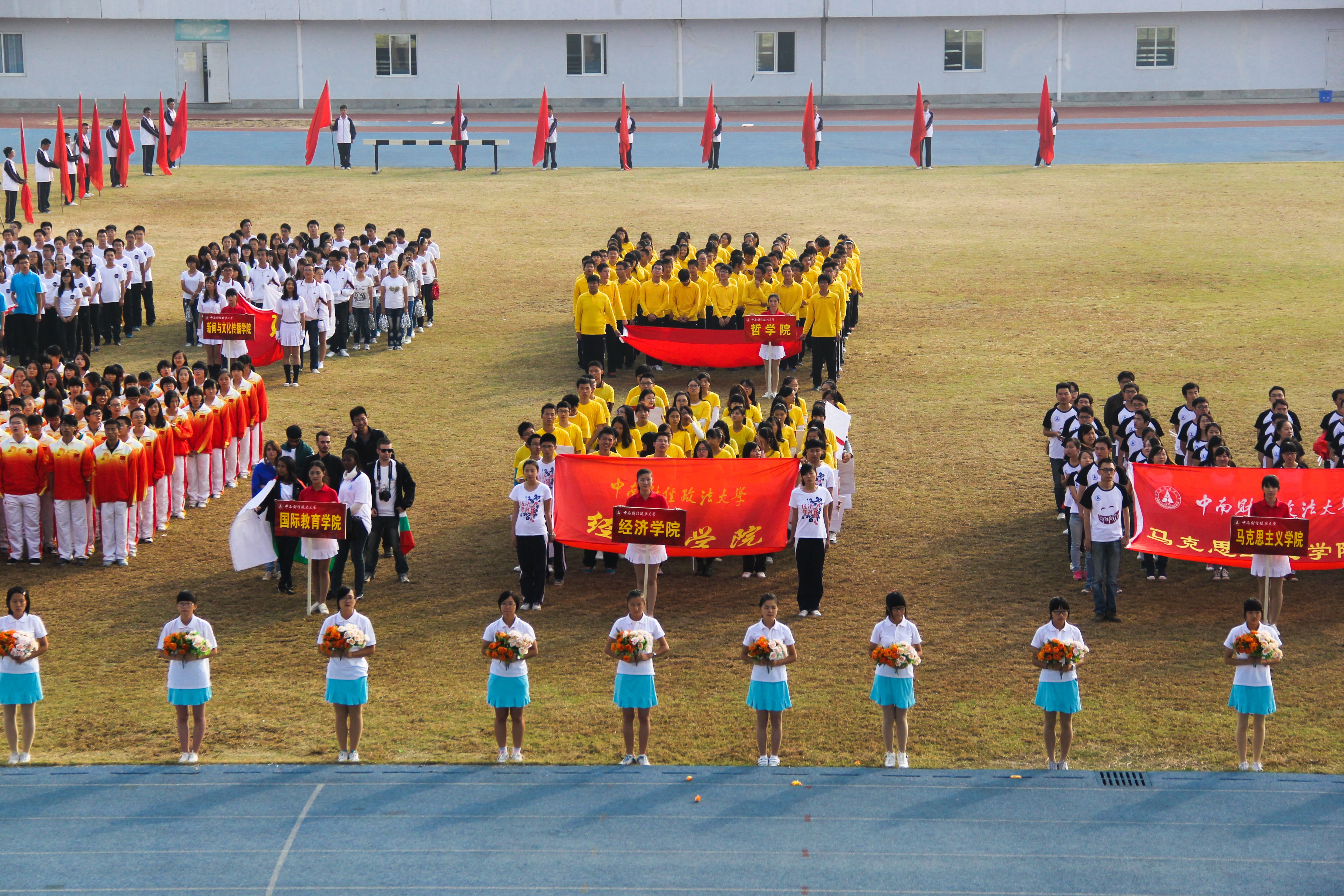 —记2013年中南财经政法大学运动会开幕式 (新闻与网络技术部 郑萍萍 吴宇晗)2013年10月24日,中南财经政法大学田径运动会开幕式在新体育场正式举行,莅临本次开幕式的有校党委书记张中华,杨志光,校党委副书记齐文远,副校长刘可风,校体育部主任沈传茂等人。