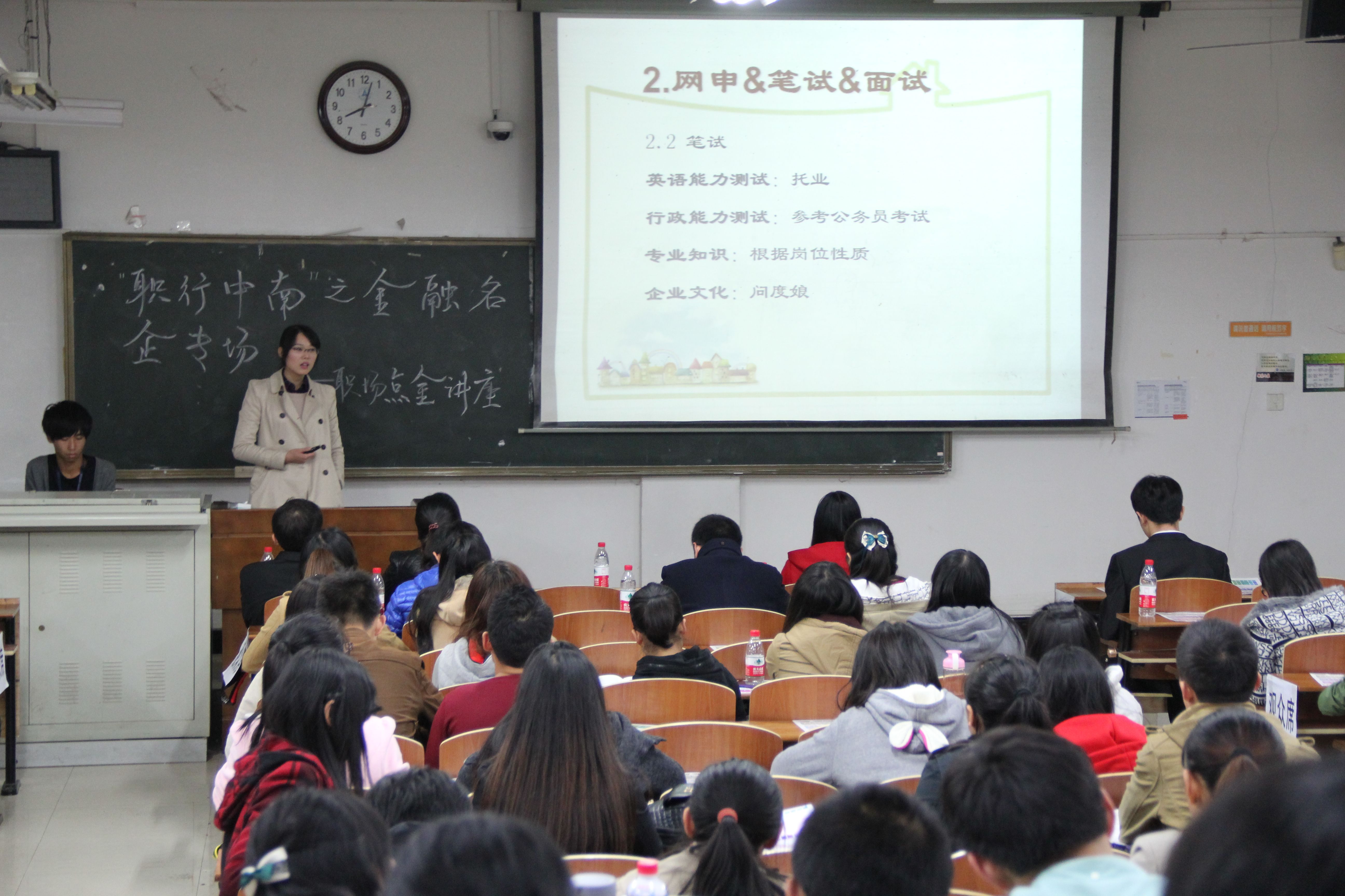 (新闻与网络技术部郑萍萍李思远)11月2日晚7点整,由经济学院分团委学生会主办的2013年职行中南之金融名企专场第二场“职场点金”讲座在文澜110隆重举行,莅临本次讲座的领导有经济学院党委副书记詹万明,经济学院团委书记周琼,特邀嘉宾有申友教育创始人kevin老师,前程无忧武汉市场部总监曹琳,而本次讲座的主讲人为我校优秀毕业生:刘红材,徐慧芳以及吴腾。 在讲座开始前,本次大赛的笔试出题人曹琳就试卷考题倾向做了说明,她表示:在现今就业难,择业难的社会大环境下,对求职者的心理素质要求和人际交往能力的要求大大提高,相应地,她也将在试题中注重这一方面的考查,同时,她提醒在场观众在求职过程中,要注意求职技巧的重要性,建议大家多多参与该类求职活动。 在主持人简单介绍来宾之后,讲座正式开始。首先上台演讲的是现就职于中国建设银行湖北省分行公司业务部的吴腾,他针对众人追的银行工作做了许多介绍,在他看来,银行是一个与政府部门关系十分密切的地方,需要的是逻辑性强,综合管理能力强的新世纪人才。而刚刚进入银行工作面对的则大部分是一些琐事,这一阶段主要是一个学习与熟悉的阶段,还无法很快体现或展示新人的个人能力,但是在逐渐跟上银行工作节奏之后,个人就可以在这一工作岗位上充分发挥个人能力,寻求广阔的发展空间。当然,吴腾也指出,在银行这一高收入,宽平台,好起点的行业,背后免不了有些许辛酸,如工作压力大,心理负担重,沟通成本高等问题,所以他提醒师弟师妹们在择业时要充分考虑个人心理承受能力。 继吴腾的精彩演讲之后,接下来上台的是现任交通银行湖北省分行管理培训生的徐慧芳,由于与吴腾同为银行工作人员,所以就银行问题她并未做过多分析,而是将重点置于求职技巧的解说。在她看来,在求职之前,应当做好求职定位,即对自身、行业、企业进行分析,并要做好中英文简历和自我介绍,而求职过程中,要做的面面俱到,这就需要综合能力的提高和创新思维的培养。在最关键的面试阶段,要保持心态平和,在当今最为普遍的结构式面试和无领导小组讨论面试形式中,面试官着重看的也是求职者的逻辑思维能力和语言表达能力,这也说明了心态的重要性。同时,她也指出在小组讨论中,不要强势,要保持良好的讨论氛围,要有团队协作精神。 最后演讲的是为大多中南财大学子所知的中南大APP创始人,曾于德勤华永会计事务所(四大)实习,现任腾讯公司QQ空间产品经理的刘红材,他的演讲主要关注的是简历撰写及投递的技巧说明,他指出简历越早做越好,这样可以及时修改或补充;在简历中要多使用数据及短句以给人直观的了解,同时要保持字体的清晰,行文的流畅;而针对不同企业,不同岗位,简历制作的侧重点要不同,例如外企注重个人领导能力,那么你在简历中就要着重突出这一点。和前两位主讲人一样,刘红材也指出了面试技巧的重要性,所以他鼓励大家要经常进行思考,多多关注企业面试形式的改变。 在讲座最后,申友教育创始人kexin老师做了总结性发言,着重提出了经验,理念,兴趣及职业规划对找到好工作的突出作用。历时2个半小时的讲座在一片掌声中落下帷幕,相信本次讲座定会为即将进入社会的毕业生们拨开迷雾,寻找到正确的方向。 |