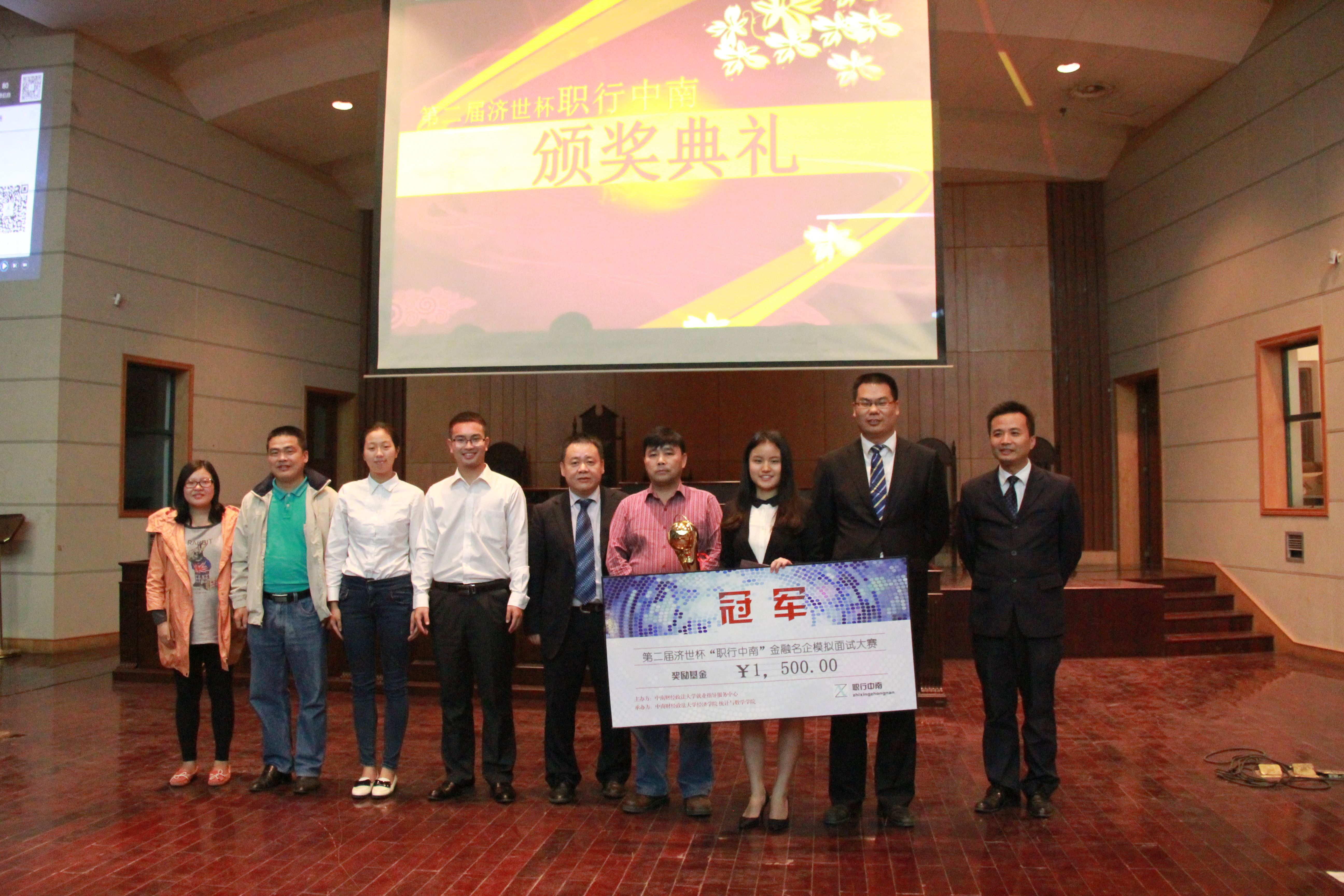 (新闻与网络技术部 郑萍萍 吴宇晗 卢昊晨 徐斌)2014年10月16日晚七点,由我校就业指导中心主办,经济学院和统计与数学学院联合承办的第二届“济世杯”职行中南名企模拟招聘大赛总决赛在文泰楼模拟法庭拉开帷幕。六位来自四个不同学院的选手经过四轮比拼,最终会计学院的刘珺同学摘得桂冠,经济学院的张文达同学与会计学院的宋丝雨同学分列第二、三名。