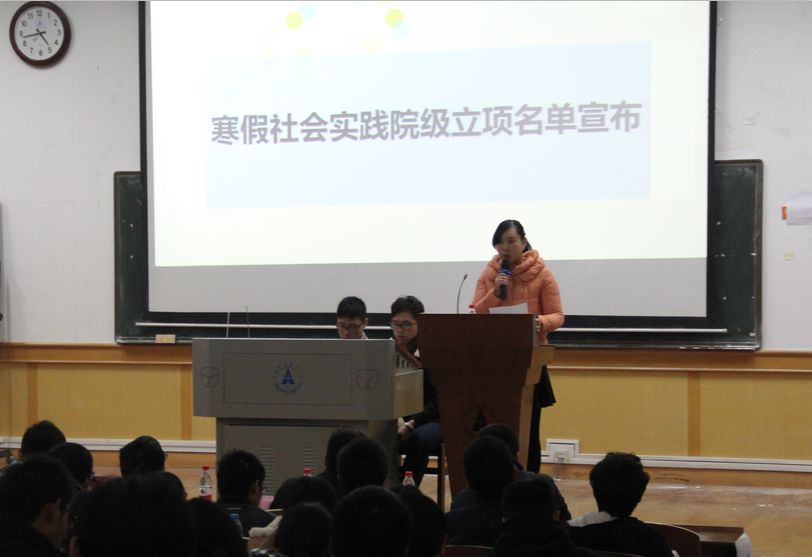 (新闻与网络技术部 卢昊晨 王洁)2014年12月4日下午4点30分,由经济学院分团委学生会主办的暑期社会实践表彰大会暨经验交流会在中南财经政法大学文澜楼310举行。经济学院党委武身汉书记、詹万明副书记,经济学院分团委书记、2014级辅导员周琼老师出现本次大会。本次大会旨在交流社会实践活动的成功经验,解答大家对社会实践的疑问,为大家提供一个学习的良机。 大会首先由詹书记致辞,他认为社会实践有三个要点值得注意。第一是要“树正气”,作为国家未来的建设者,应该以报效祖国和人民为目的投身社会实践;第二是要“接地气”,要学以致用、将理论综合运用于实际;第三则是提高创新意识、培养创新能力,采取创新态度付诸行动。 在一段暑期社会实践活动总结的视频后,大会进入了总结表彰环节。集中表彰了我院两支校级优秀社会实践队,三项社会实践优秀成果,十七名社会实践先进个人以及一名优秀带队教师。并由周琼老师公布了寒假社会实践院级立项名单。随后,武书记发表讲话,他认为社会实践是高等学校培养人才的重要环节,对于经济学这类社会人文学科更是如此。开展社会实践应该追求对课题深入精细的探讨。此外,对于一些立足社会热点的热门选题,他给出了客观的评价:热门可赶,但仍需从经济学出发,最好可以将经济学与其他部门进行结合。他还告诫各位同学要利用大学时间多读书,尤其是经济学相关书籍。 最后则是经验分享环节。慈维民、杜敦耀、许薇三位同学分别就“组队注意事项与选题心得”、“社会实践调查报告内容及注意事项”、“调查方法及成果展示”三个方面向在座同学分享了自己的经验,并与现场观众进行了答疑互动。在微信互动墙上,同学们都表达了自己对这三位同学的敬佩,也纷纷表示受益匪浅。 本次活动对同学们的社会实践活动有很强的指导作用,给予了尚存困惑的同学们一盏明灯。这些来自学院领导和学生代表的建议不仅会让同学更加自信的走上社会实践的道路,也会在未来的社会生活、职场生活中走出属于自己的一片天,期待经济学院的社会实践活动更上一层楼。
