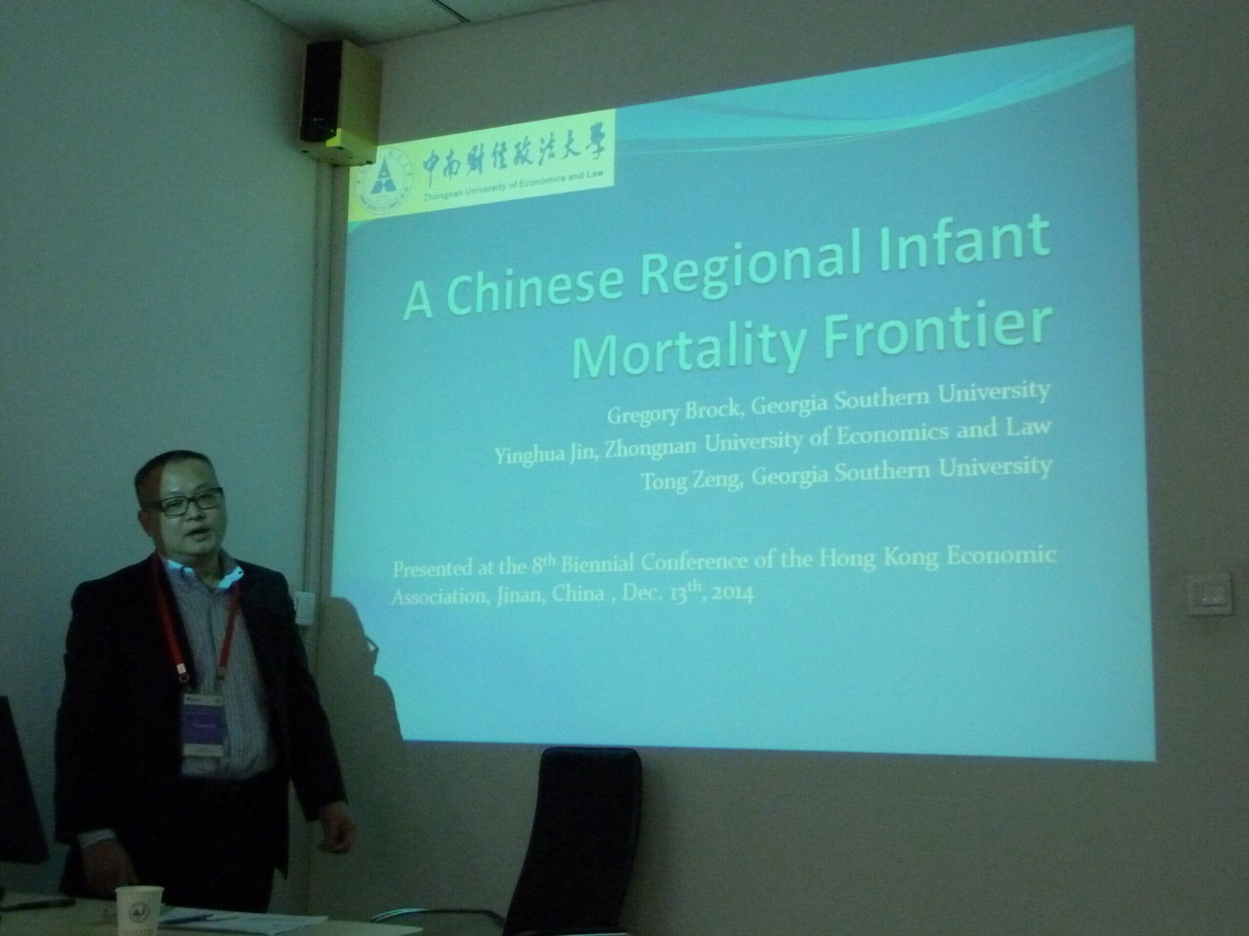 我院青年教师金应华博士与美国南乔治亚大学教授合作的一篇有关利用随机前沿模型来估计中国各个地区的出生婴儿死亡率的文章被大会接收。在向大会有关健康和老龄化的分会场报告中,金博士阐述了这个研究的动因,背景并且详细介绍了该项研究对于现有文献的贡献。金博士指出,随机前沿模型一般被频繁用于成本和产出函数的估计,而被用来解释公共卫生领域的婴儿死亡率,还是最近才出现的。而对于中国,作为一个中等收入的发展中国家,用随机前沿模型来估算可能发生各地区的出生婴儿死亡率的瞒报和漏报问题,还属于比较新颖的。中国作为一个中下收入国家,在各地进行公共卫生数据统计,汇总,上报过程中,难免因为经济发展水平,公共卫生软硬件设施的局限,统计口径的不一致等等,而发生婴儿死亡率的瞒报和漏报。同时,中国又是一个传统上对于男性有特别偏好的东亚国家,这个从非正常的高比例出生婴儿性别比就可以看出。基于已有的研究和上述原因,完全有理由相信真实的出生婴儿死亡率比现在政府公布的官方数据要高,从而产生一个单边误差分布。接着,金博士报告了基于前人研究的模型设定和结果,发现了各个地区,根据这个模型,确实存在相当数量的出生婴儿死亡瞒报和漏报,并解释了模型其他变量的估计值,对于出生婴儿死亡率的影响和意义。与会的其他嘉宾也热烈地参与到金博士这个研究的讨论,比如模型的设定问题,变量的衡量问题,和估计结果的解释问题等等。