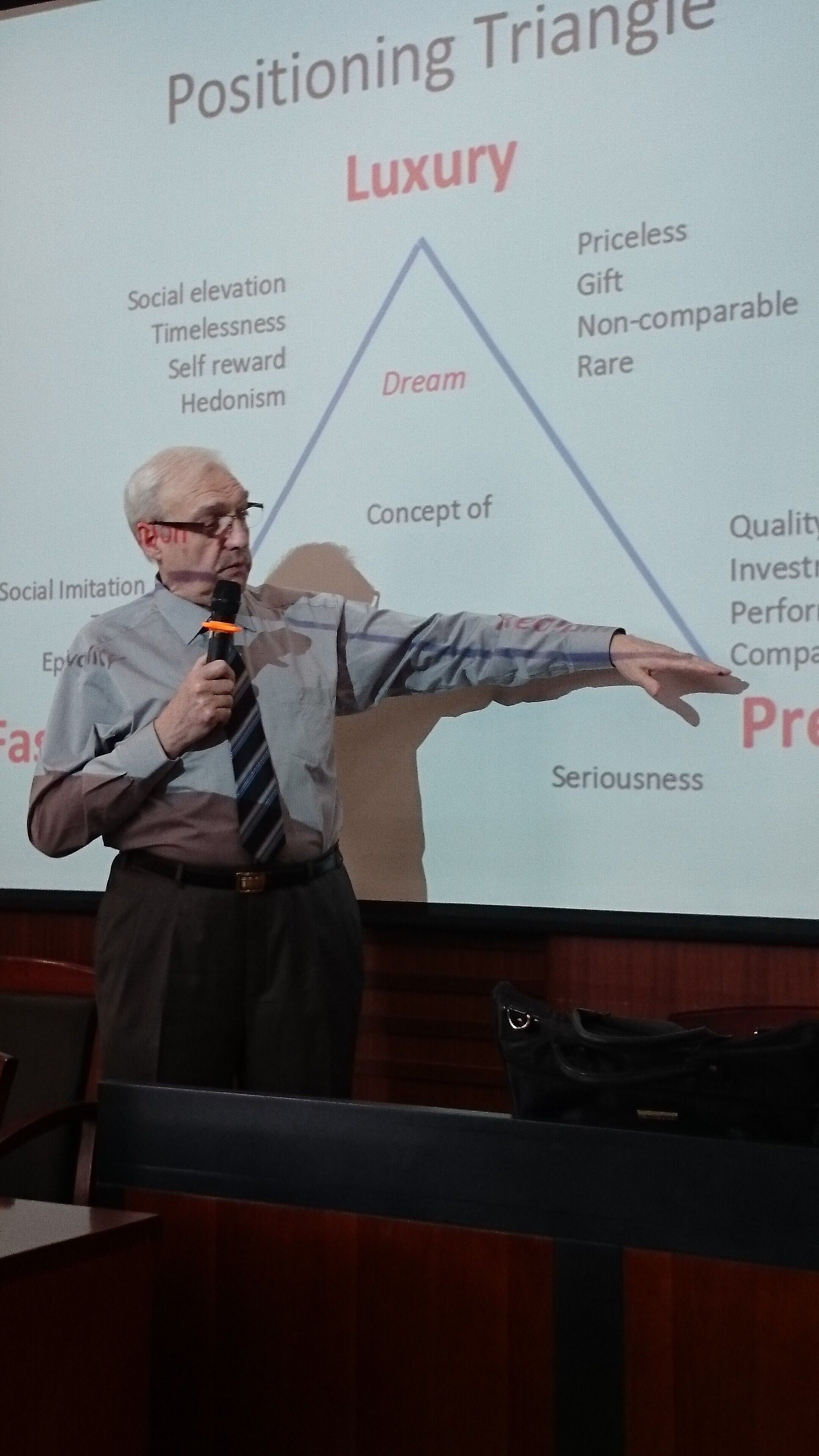 讲座开始,Oreal教授首先简单介绍了奢侈品行业的现状以及大家耳熟能详的国际奢侈品品牌。接下来运用经典的4P(Product, Price, Place, Promotion)营销组合理论对奢侈品行业进行了一个系统的分析。在谈及消费者对奢侈品的购买动机时,OREAL教授运用一句“Scarcity creates desire(因为稀有珍贵,所以为之疯狂)”,生动形象地揭示了消费者对奢侈品趋之若鹜的心理动因。在谈到如何对一个奢侈品进行定价时,OREAL教授告诉同学们一个奢侈品行业中定价的基本理念:“Luxury decides price,not price decides luxury (奢侈品决定价格而不是价格决定奢侈品)“,奢侈品的定价并不遵循市场定价的规律,而是根据其自身的品牌价值和制作成本来决定的。接下来,OREAL教授还介绍了关于奢侈品如何进行市场营销及推广方面的内容。在谈到以经典为标签的奢侈品行业遭遇现代化的电子商务浪潮时,OREAL教授给同学们提出了一道开放式的思考题:”奢侈品是否应该通过电商的方式进行销售?“这道问题的提出引发了在座同学的大讨论,在经过激烈的辩论之后,欧莱雅教授给出了最终的答案:奢侈品所针对的客户群体以及奢侈品自身的定位决定了网络销售的方式是不可行的。随后,OREAL教授还对奢侈品牌如何设立销售门店以及旗舰店的方式做了详细的分析说明。在讲座的后半段,OREAL教授将理论联系实际,运用LVHM公司的实际案例对整个讲座的理论知识点做了一次全面的回顾。在最后的互动环节中,现场同学针对OREAL教授的精彩演讲踊跃提问,OREAL教授深入浅出地给予细致回答,再次将会场氛围推向高潮。 根据经济学院和雷恩商学院的合作协议,雷恩商学院每年将选派老师给中法班的学生讲课,并且讲课的时间会逐步增加;到中法班的学生们大三的时候,雷恩商学院的老师将会来我学院给学生免费上一门(32课时)的专业课。 【主讲人介绍】Dr. OREAL Serge, 法国雷恩商学院国际商务专业专职教授,法国巴黎高等商学院(HEC)、美国西北大学凯洛格商学院,上海交通大学客座教授,欧盟委员会专家,1982年博士毕业于美国西北大学,获管理学博士学位,长期担任美国福特汽车公司、英国捷豹汽车公司、法国电信集团等公司的高级顾问,致力于企业战略管理、国际商务管理以及小型商务管理等相关研究。