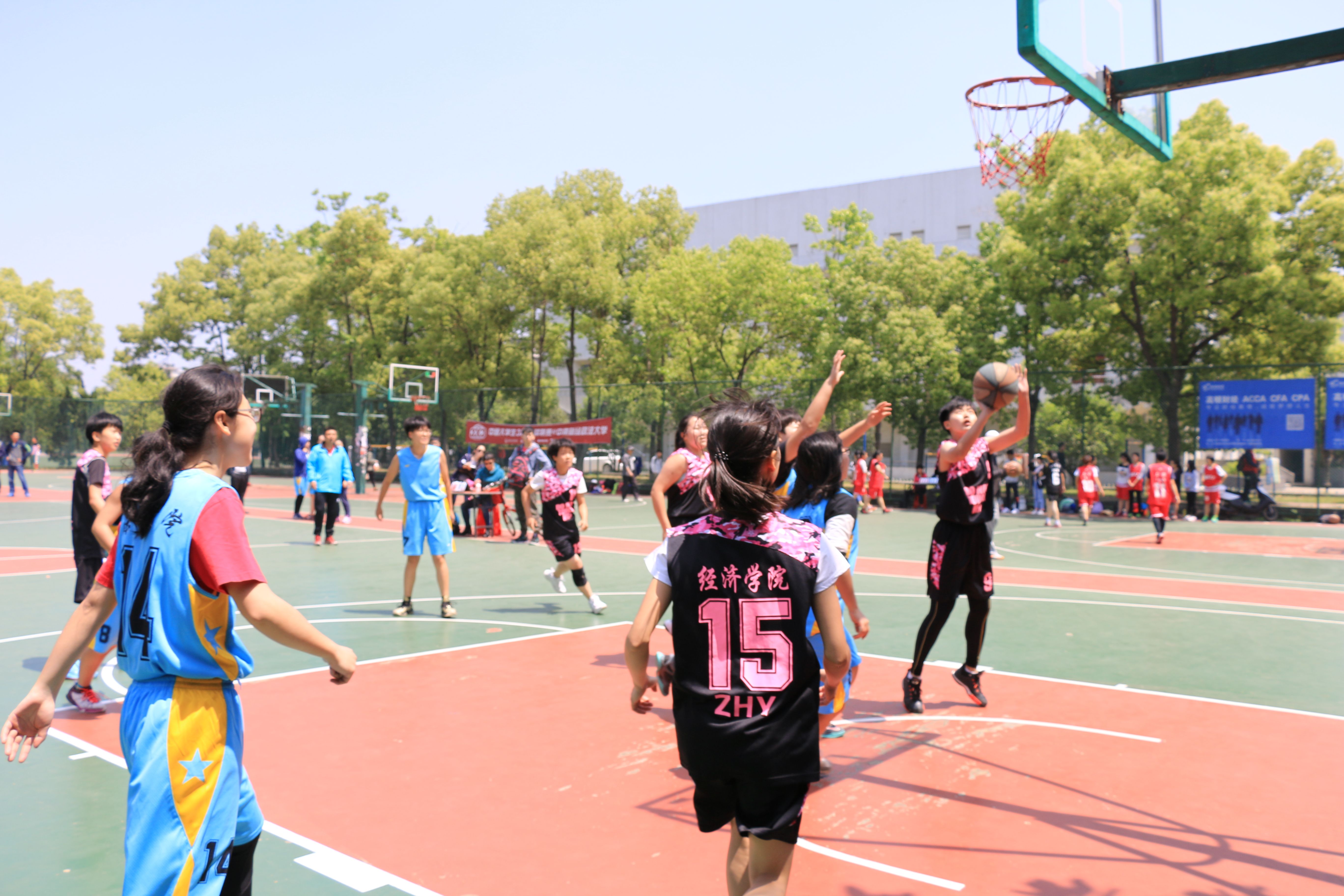 在4月15日与刑司学院的比赛中,双方不分伯仲,打得难舍难分,好在队员们沉着冷静,最终以一分的优势险胜。至此,校女子篮球赛的小组循环赛结束,我院女篮以六胜一负的骄人成绩出线。 4月18日,经过三天的休整,我院女篮迎战会计学院,队员们表现精彩,比赛也十分激烈,甚至进入了加时赛。在加时赛中,我院队员看准机会,果断出手,凭借一个帅气的进球赢得比赛,晋级四强。 4月19日,经院女篮与法学院展开争夺战,经过激烈角逐,我院以21:15赢得比赛,同时也不负众望进击决赛。决战在即,希望我院的姑娘们继续努力,在最后一战中顽强拼搏,竭尽全力也希望经院女篮一直保持活力,再创辉煌。