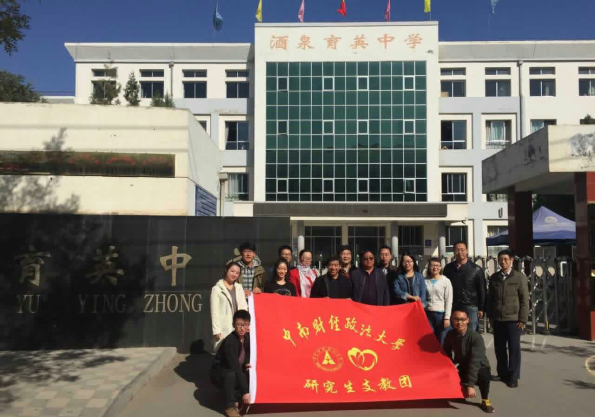 2016年10月10日,经济学院党委书记武身汉、学生办公室主任孟庆红、党政办公室主任王伟和分团委书记康俊一行人来到甘肃省酒泉市看望正在当地进行为期一年支教服务的我校第十八届研究生支教团成员,并与团员进行亲切地交谈。参与座谈会的还有支教地酒泉育英中学狄建国校长、酒泉市肃州区团委书记王睿、青联主席韩正宇。 中国青年志愿者扶贫接力计划研究生支教团(简称:研究生支教团)是由团中央、教育部联合组织实施的青年志愿服者扶贫接力计划全国示范项目。它采取公开招募的方式,从1999年至今,每年在全国部分重点高校中招募一定数量具备保送研究生资格、有奉献精神、身心健康、能够胜任支教扶贫工作的应届本科毕业生,以志愿服务的方式到国家中西部贫困地区中学开展为期一年的支教工作,同时开展力所能及的扶贫志愿服务。中南财经政法大学研究生支教团自2007年成立,至今已有十年历程。