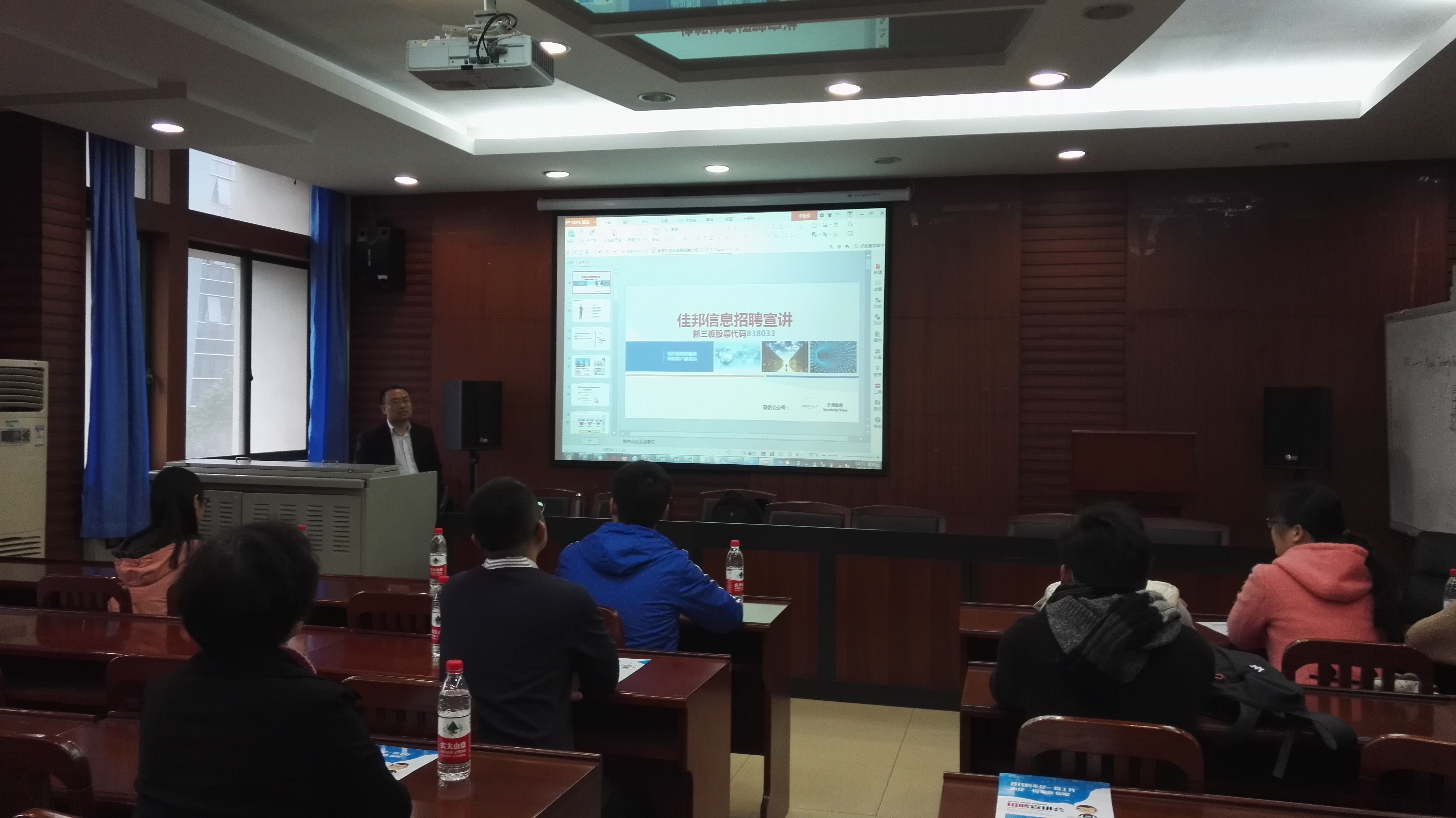 为我院毕业生就业着想,应国际经济学系主任陈浩教授的邀请,在院学工部孟庆红老师安排、罗慧敏老师组织下,18日下午2:30在文泉楼南206经济学院会议室,我校杰出校友、我院毕业生、广东佳邦信息咨询股份有限公司代表元露丰高级顾问来我院开展招聘活动。