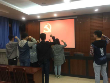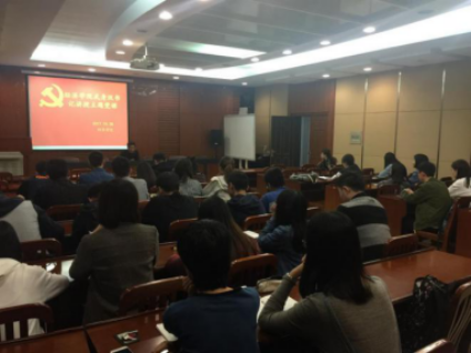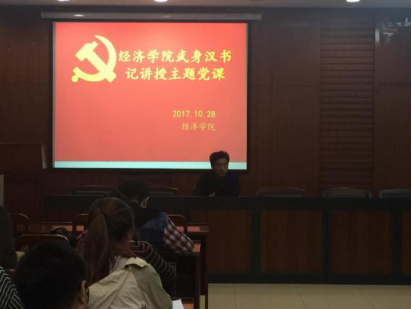 2017年10月28日下午6点,经济学院党委武身汉书记为经济学院本科生全体预备党员、正式党员讲授了以学习十九大报告为主题的党课。会议伊始,在学院党委的指导下,七名新发展的预备党员在党旗下进行了庄严宣誓。