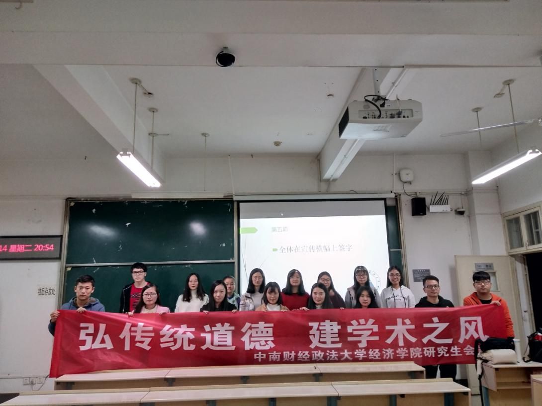 活动伊始,经济学院全体研究生共同观看清华大学彭林教授关于人文道德的讲座视频,大家认真聆听,积极思考,勤做笔记。观看完视频之后,有同学主动上台分享感悟,经济史专业牛浩同学表示对精神文化有了更深的理解并提出自身的不足之处,西方经济学专业范小山同学则引经据典通过孔鲤学诗学礼的小故事来表达自己的感受。