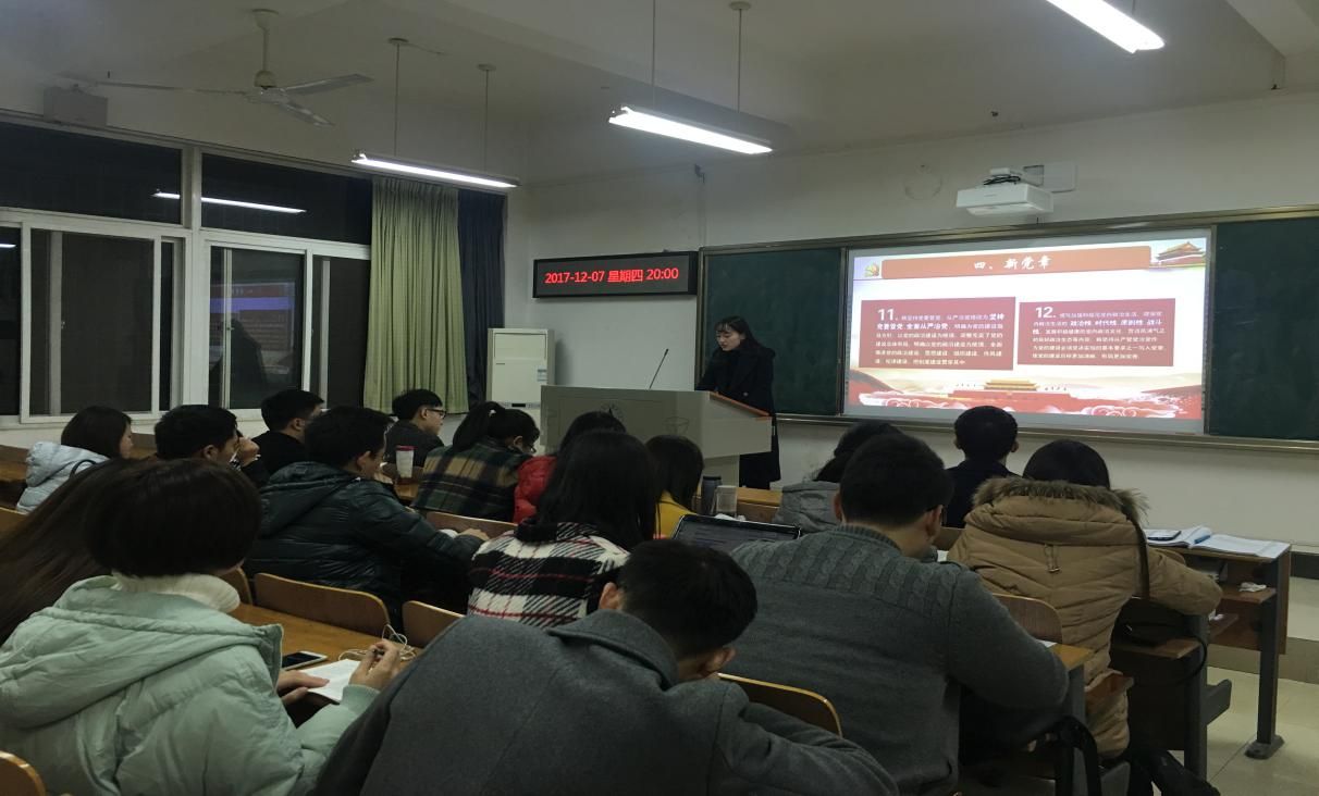 (通讯员 夏欢)20171271930分,经济学院2016级研究生党支部12月主题党日活动于文添110室顺利举行,本次活动主题为“学‘新思想’,学‘新党章’,做新时代合格党员”。本次活动支部书记刘怡君主持,支部共22名党员参加了本次活动
