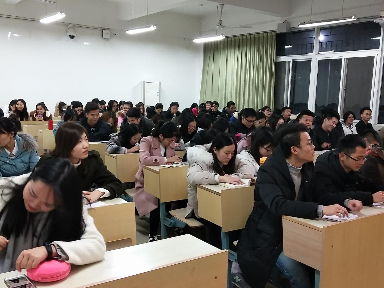 2017年12月8日下午6时,半岛线上平台于文添楼102教室展开了研究生十九大报告学习会。研究生辅导员岳明泽老师,2017级全体研究生以及经济学院研究生会全体成员参与了此次活动。