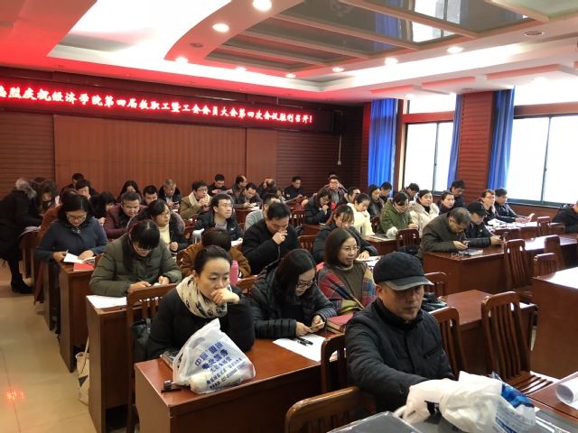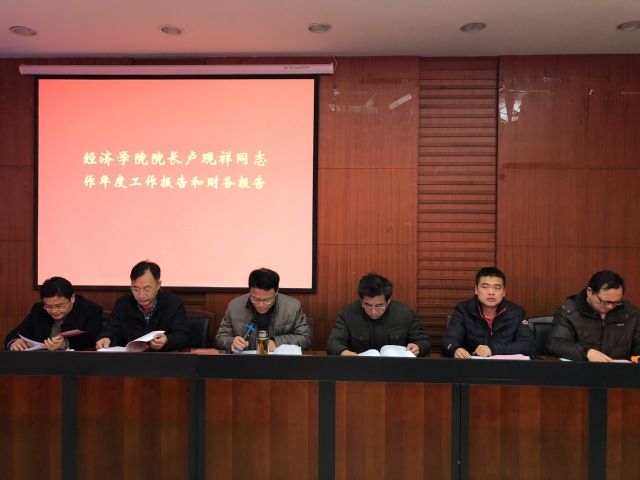2017年12月28日下午13:00,文泉楼南206会议室,经济学院第四届教职工大会暨工会会员大会第四次会议胜利召开。本次大会由经济学院教(职)代会主任委员陈浩老师主持,经济学院全体教职工出席了本次大会。