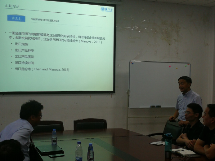 由半岛线上平台举办的2018年第9期“经济中南”学术研讨会于6月30日上午在文泉南楼207会议室顺利举办。此次研讨会邀请到了四位四位在学界的优秀校友,分别为罗长远教授、章奇教授、罗楚亮教授和冯志刚教授。复旦大学的罗长远教授大家分享了他的最新工作论文“Financial Development and International Trade: is China Different?”。经济学院李小平教授为本次研讨会主持人。其中,来自Western Michigan University的James. Hueng教授,经济学院的王爱君教授、马强文博士、周强博士和苗双有博士等,工商管理学院教师李敬子副教授,以及部分博士生和硕士生参加了本次学术研讨会。
