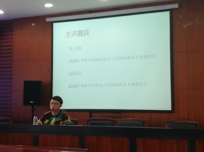 (通讯员:戴岭 摄影:任明喆)为使同学们更好地做好考研准备,增强考研信心,2018年10月18日下午4点,经济学院2019届毕业生考研交流会在文泉南206会议室举行。本次大会由经济学院2015级辅导员谢朝阳主持,2018届考取中南财经政法大学国际商务研究生的李方林师兄和考取华中科技大学研究生的赵钰玘师姐为同学们进行经验分享。