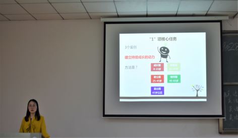 首先,是一项核心任务,兰玉娟老师用三个案例引入,提出大学生要建立持续成长动力。而后用一个盲目考证的负面案例和一个早定目标的正面案例指出,大一学生正处于五个职业时期的探索时期,建立持续成长动力的任务必不可少。