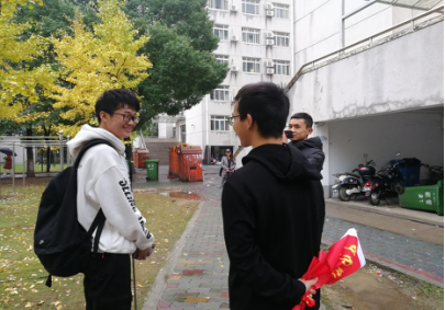 11月18日上午8点40分,同学们来到学校北门进行集合,虽然天公不作美,但同学们都积极配合参与活动。首先,由团支书向同学们介绍本次活动的形式“街头采访”,共分5队,每队5-8人,以北门为起点,采访范围为校内外,随机访谈路人关于改革开放四十周年的感想和体会。每个队伍可自行分配任务,并采访至少5人,拍摄3个采访视频,在采访过程中要保持礼貌,询问被采访者意见。