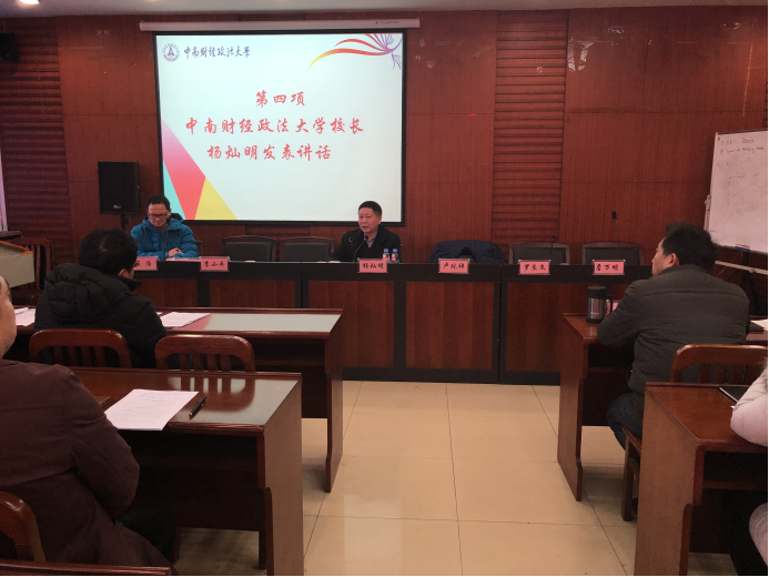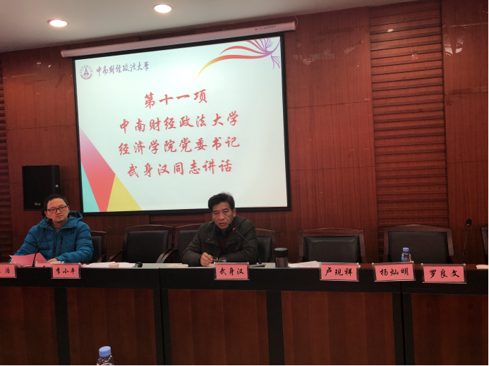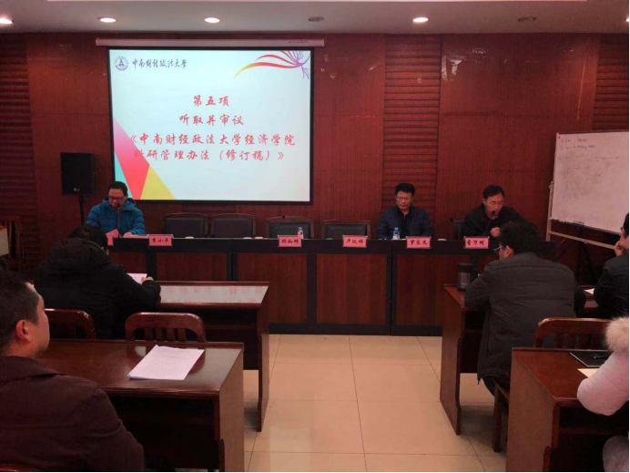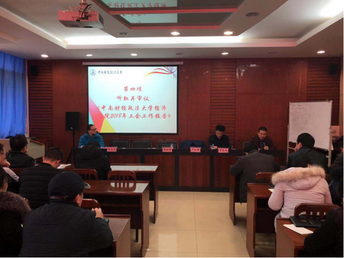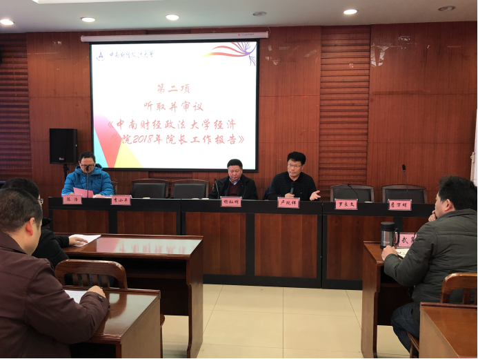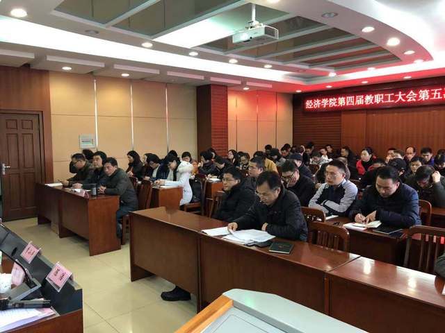 (通讯员:宋昀宜)中南财经政法大学经济学院第四届教职工大会第五次会议暨分工会会员大会于2018年12月20日下午在文泉南206会议室顺利召开。本次大会由经济学院教(职)代会主任陈浩主持,中南财经政法大学校长杨灿明教授及经济学院全体教职工出席了本次大会。