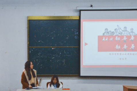 紧接着,分团委副书记傅佳雯同学对在座全体干部、干事进行了团校培训。傅佳雯同学从习近平总书记对青年的概括与期望切入,讲述了陈独秀同志撰写的《敬告青年》、李大钊同志撰写的《青春》与毛泽东同志撰写的《体育之研究》的重要性。接着,傅佳雯同学提及本校的校训以及办学精神,强调了成为“有理想、有能力、有担当”的“三有”青年的意义。
