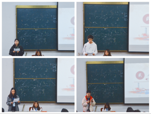 会议伊始,各部门干事代表依次上台述职。各部门干事代表分别对本学期的工作进行了总结,并从自身出发,谈及个人工作能力的进步以及各自在部门得到的成长与感受到的温暖与感动,并讲述了所在部门下学期的工作计划和对未来的展望。