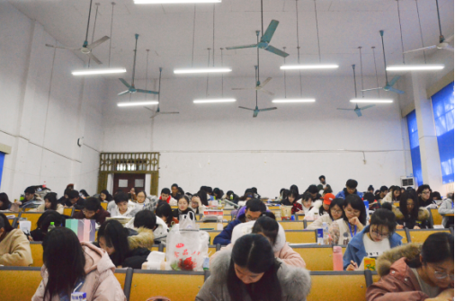 (图4:干部、干事认真考试)