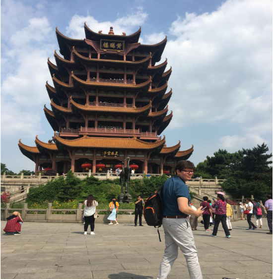 讲学之余,Roman教授也利用课后时间了解了武汉。5月28日(周二),中法班三位同学魏昕仪、张晓宇,程顶旭作为学生代表,陪同 Roman教授游览武汉,他们一起参观了湖北省博物馆并且游览了黄鹤楼,还让Roman教授尝试了武汉特色美食。Roman教授表示,这是他第一次来中国,不仅认识到了有趣的中国学生和老师们,还能够有机会游览武汉这座极富魅力的城市,他感到收获颇丰,若以后有机会,还会再来中国。