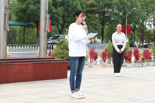随后,来自国商1602的徐义葶同学做国旗下讲话。徐义葶同学回顾了我国过去70年的曲折历程与伟大成就,呼吁全体师生正确认识祖国的历史和现实,增强爱国的情感和振兴祖国的责任感,“不忘初心、牢记使命”,锐意进取,自强不息,顽强拼搏。