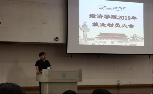 20191010日下午230,经济学院2020届毕业生就业动员大会在文澜111教室召开。出席本次大会的领导有校就业指导服务中心主任汪平,经济学院党委副书记詹万明,2020本科生辅导员孟庆红和研究生辅导员岳明泽老师。