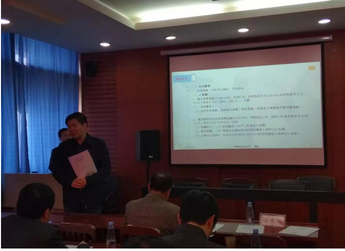 第二位参赛选手是周强老师。周强老师授课内容是“短期经济波动模型——产品市场均衡”,周强老师模拟了课堂上课模式,增加了许多情景对话,赢得大家阵阵笑声。