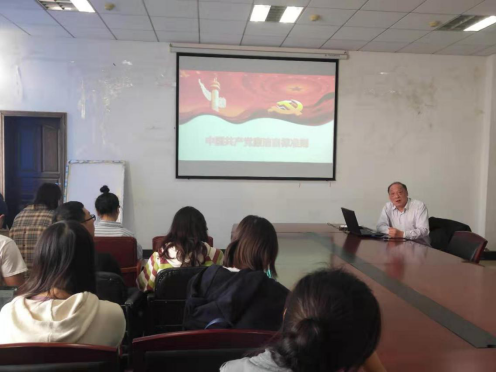 2019117日下午两点半,经济学院分党校2019年秋季预备党员培训班正式开课。经济学院党委书记陈勤舫老师讲授第一课“《中国共产党廉洁自律准则》、《中国共产党纪律处分条例”。