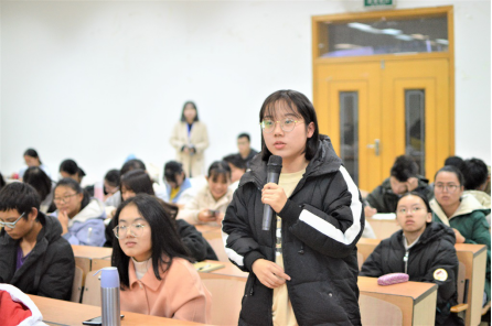 最后,进入同学自由提问环节。在场同学积极提出问题,张伟政与周敏同学针对提出的问题逐一解答,会议气氛高涨。