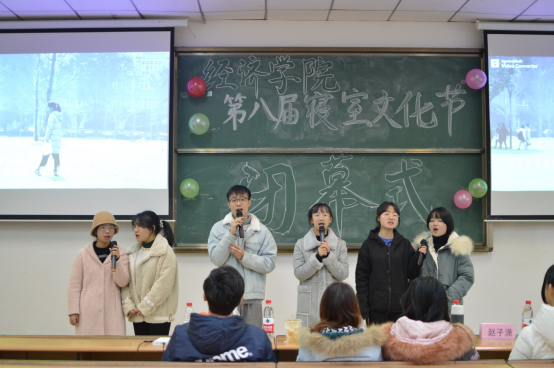 (学生记者沈琦皓 摄影孔康杰)12月1日上午9时,经济学院第八届寝室文化节闭幕式在首义校区文泽楼303教室举办。本次活动由经济学院学生会主办,学生会生活权益部承办,隆喻靓靓同学主持。经济学院学生会主席张嘉乐同学、学生会副主席叶萌同学、生活权益部部长吴华蕊同学、生活权益部副部长赵子潇同学作为嘉宾出席了此次活动。