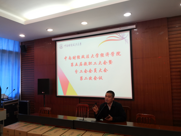 (院党委副书记兼分工会主席詹万明同志向大会作《经济学院2019年工会工作报告》)