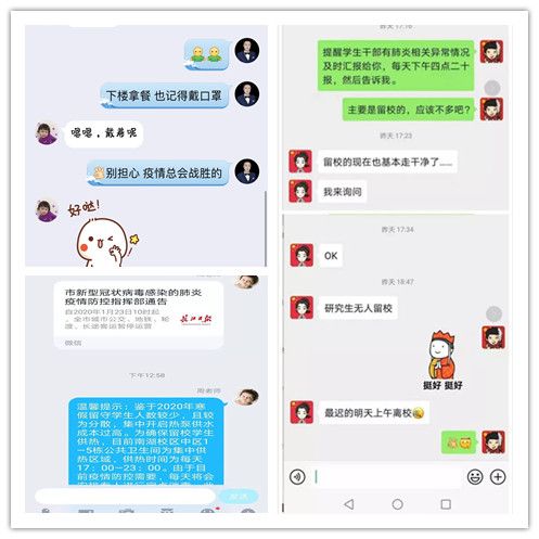 辅导员核实寒假留校确切人数及名单,线上传达转发相关防控通知,提醒学生做好防御,关心留校学生生活。
