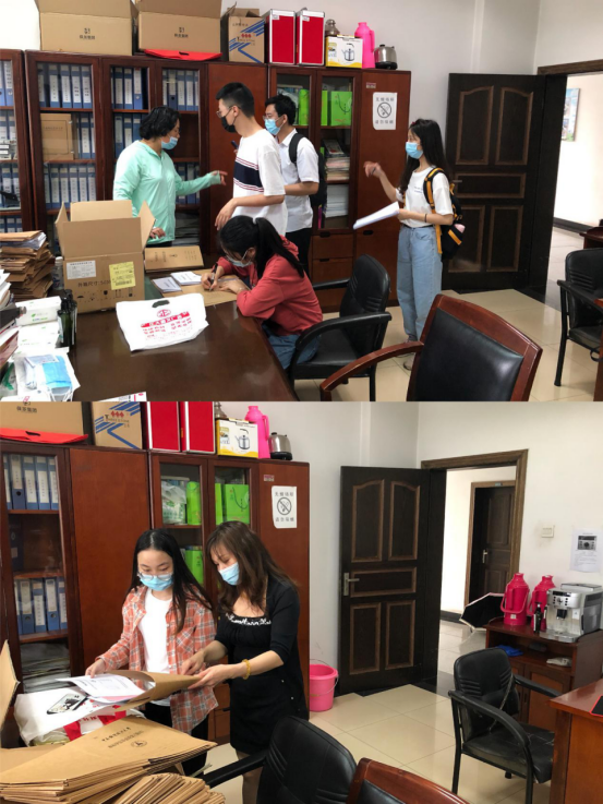 (科研秘书黎天亚、教学秘书柯萍收集学生毕业论文、开题报告等材料)