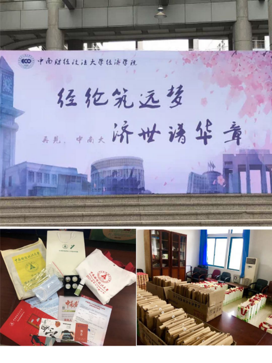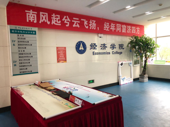 经济学院已经提前在文泉楼南布置好了接待处,为前来返校的毕业生办理相关手续。