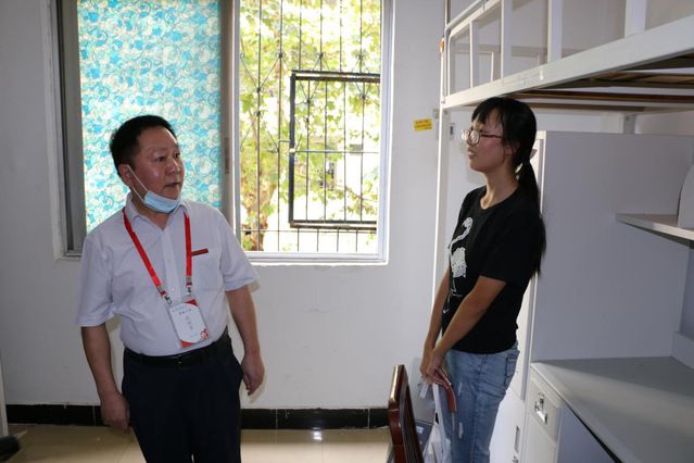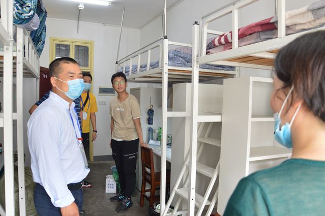中午,校领导走访2020新生宿舍,查看宿舍环境,了解新生的生活状况,勉励新生努力学习,让经济学院的新生们充分感受到了来自中南大的温暖。