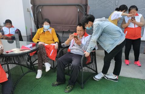接下来,成员们组织大朋友进行才艺展示,几位大朋友主动唱歌,毫不拘束,台下的大朋友也热情鼓掌,气氛十分融洽。之后进入放松的折纸飞机环节,成员们与大朋友围坐在一起,折飞机的同时一起闲谈,询问大朋友们的日常生活状况。