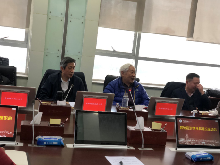 会上,尹汉宁教授对政治经济学学科的传统优势进行了回顾,提出重振政治经济学学科的倡导。他指出“5·17”讲话后,习近平总书记指出要构建中国特色社会主义政治经济学,在这个大背景下,我们要从自身出发,把我校现有的经济学优势利用起来,找到政治经济学的复兴方向。并且他指出具体的研究目标:第一、重新梳理政治经济学相关文献。以经济发展和国民财富的增长为主线,从西方经济学说、苏联尤其是列宁思想、新中国成立后的经济发展等三条线索梳理文献,让政治经济学回归本源。第二、重新研究政治经济学的研究方法和研究范式。以历史唯物主义为导向,进行总结汇通。第三、重新确定中国当代政治经济学的正确定位。这一点必须以中国当代经济发展实践为基础,并且完全赞同赵德馨教授提倡的中国经济发展学的研究。
