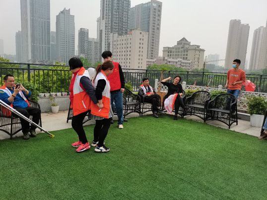 在休息环节中,部分成员抓紧时间布置吹乒乓球项目所需的纸杯列,另一部分成员陪大朋友们娱乐放松,如演唱《无问》等。随着多数大朋友成功将乒乓球从列头吹到列尾,本次活动接近尾声,小组成员与大朋友们合影留念,至此,本次暖阳之约活动圆满结束。
