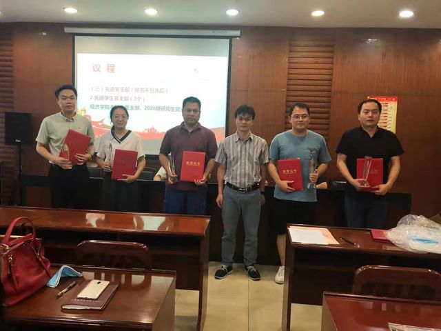 (经济学院副院长张鸿武同志为5个“先进党支部”颁奖)