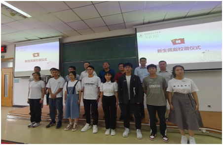 (图6:教师为新生代表佩戴校徽)