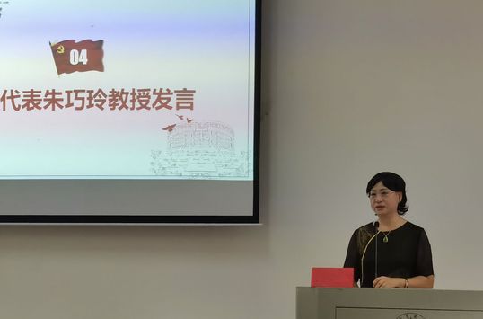 (图4:教师代表朱巧玲教授发言)