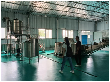 8月15日,团队成员来到因本轮疫情反弹尚未完工的新厂,在生产负责人程春华先生的带领下参观了建设中的原料储存库、生产车间、包装材料库、成品储藏库。新厂还配有研发实验室、产品质检室、产品展示厅、员工餐厅等,作为一个现代化的食品加工厂,一应俱全。程先生介绍,新厂投产后产量会大幅提高,并提升产品品质和品牌形象。展望未来,程先生向团队成员规划了一幅蓝图,做强传统工艺和品牌,带动农村富余劳动力就业,给国家创造利税、给个人创造收入,来促进行业发展。