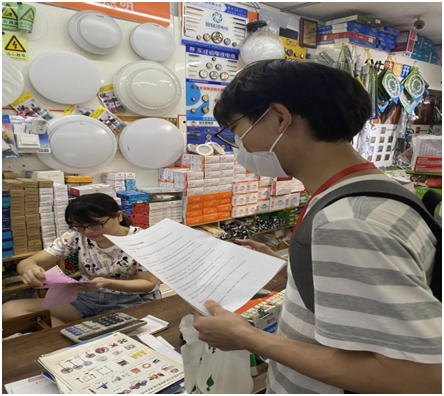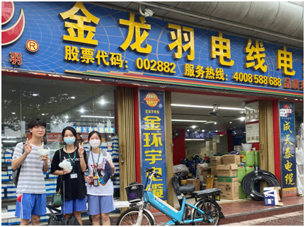 当天下午3点左右,小组成员到达金龙羽公司位于深圳市龙岗区的销售点。为深入了解金龙羽公司电线产品的真实质量,小组成员在店内专业人员的介绍与指导下购买了该公司产品,又在了解了优质电线产品标准的基础上对其进行了研究考察。通过实物探究,小组成员对于金龙羽公司产品的质量水平有了进一步确认。