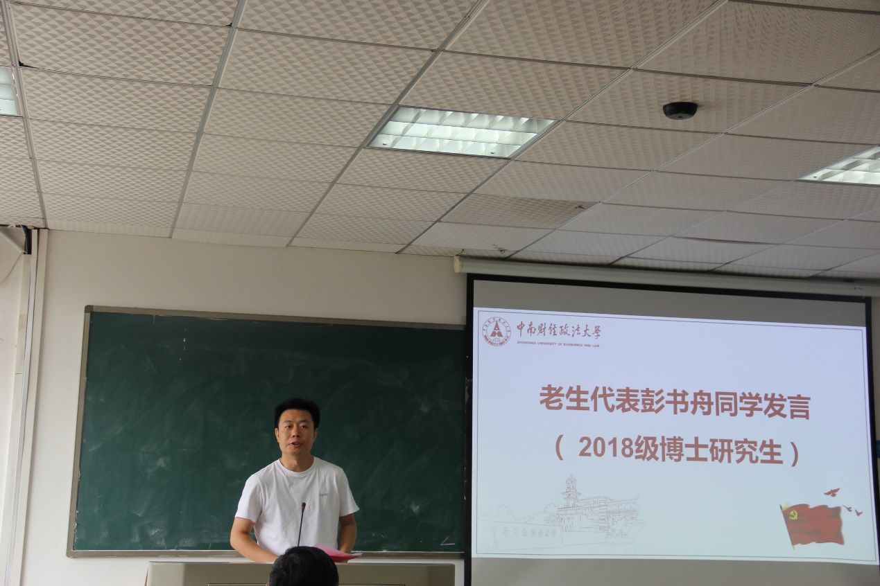 在校生代表、2018级博士研究生彭书舟同学结合自己的科研经历向同学们分享了做学术的经验。他表示做科研需要脚踏实地、戒骄戒躁;并鼓励同学们在学术道路上勇于创新,珍惜并充实自己的研究生生活。